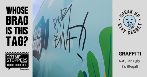 Do you know whose tag this is? This tag has vandalised property on the Shoreline Recycle Rewards Depot. Can you name who did it? Please speak up if you have any information that can help. Tagging isn’t anonymous – but Crime Stoppers is.