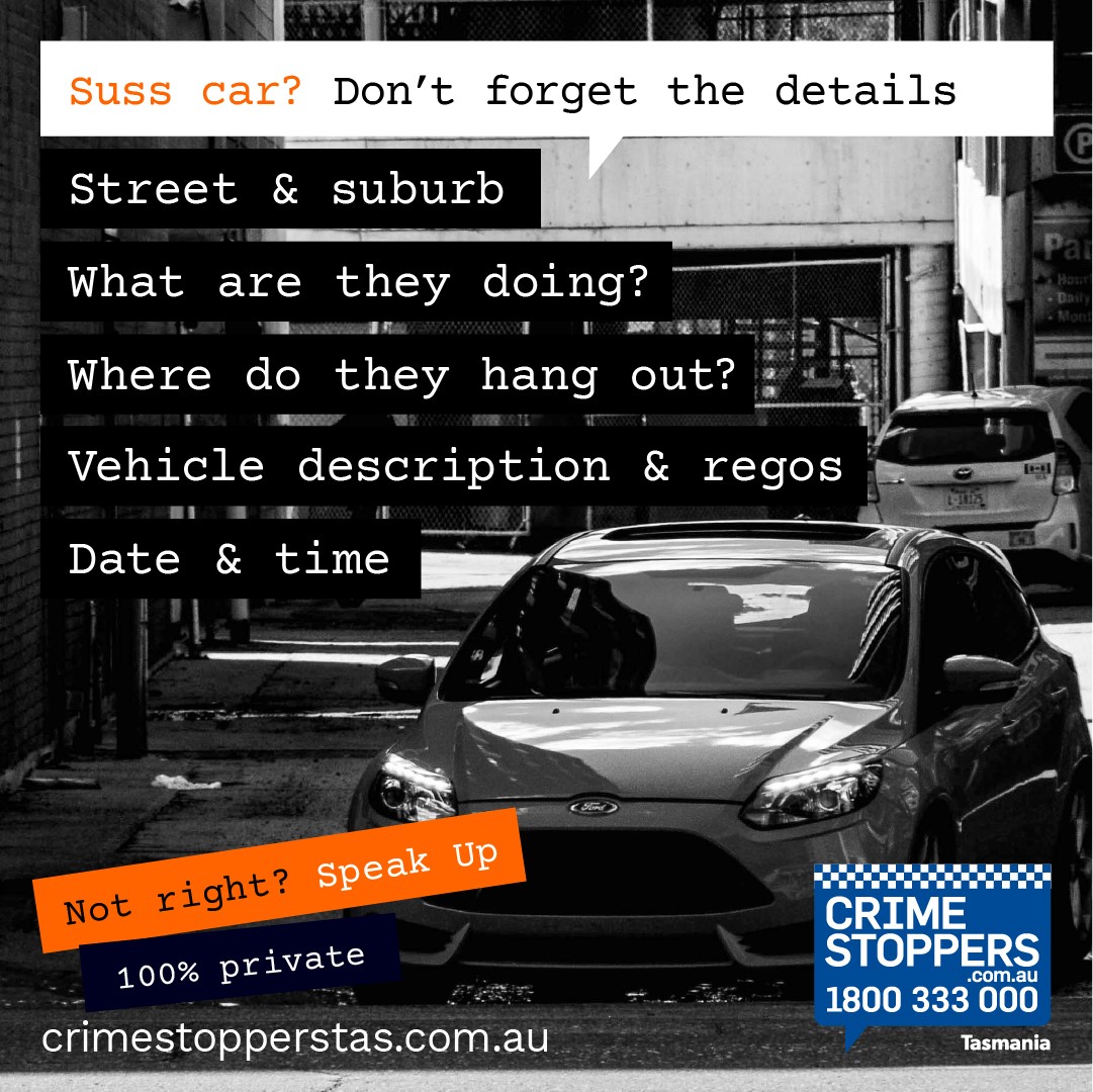 - vehicle – colour, rego, make and model, any distinctive features such as roof racks or damage